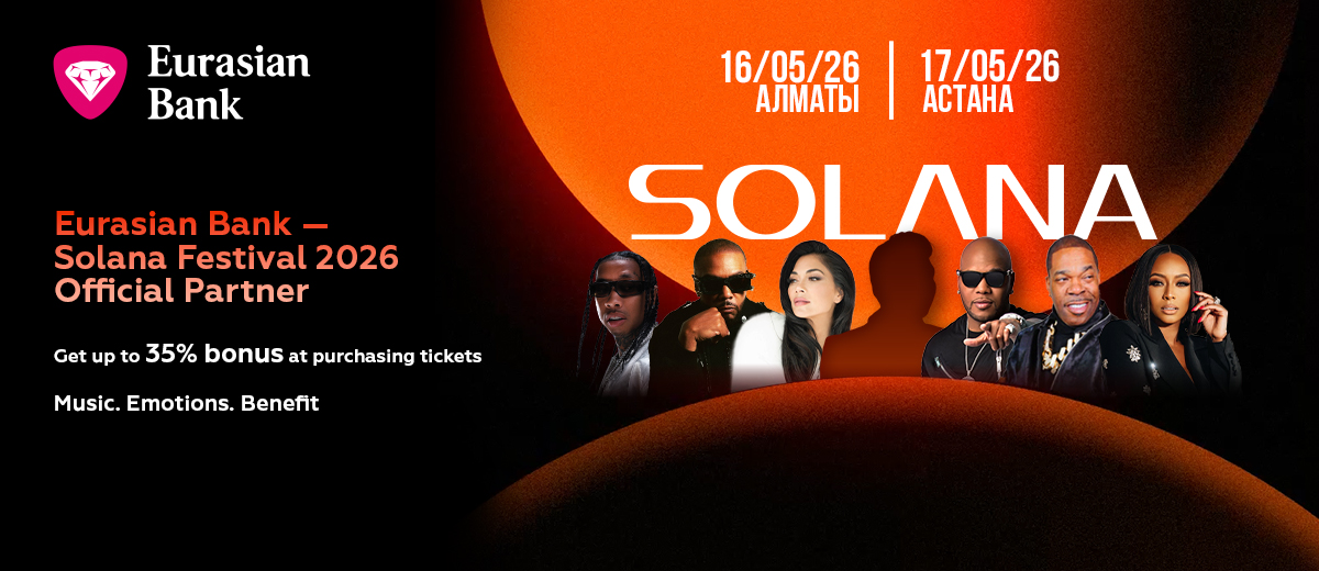 Eurasian Bank became an official partner of the Solana International Festival, which is held in Kazakhstan on 16-17 May2026 and brings together world stars, thousands of viewers and the most modern technologies of the show industry.